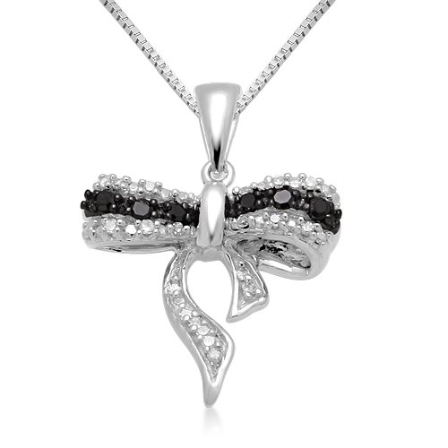Read more 10k White Gold Black and White Diamond Bow Pendant (1/10 cttw, I-J Color, I2-I3 Clarity), 18"