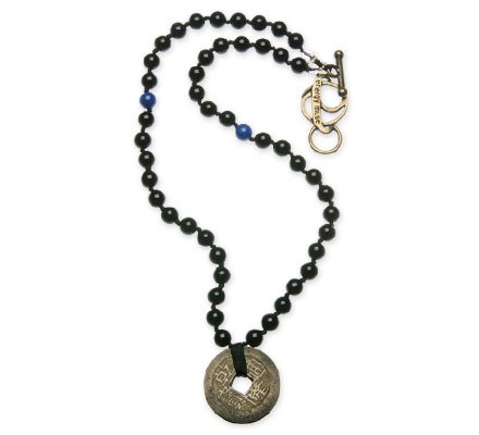 Black Onyx "Protection" Necklace with Chinese Coin - 21 1/2" Feature