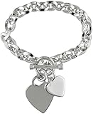 Oval Link Heart Charm Bracelet in Sterling Silver by Amour