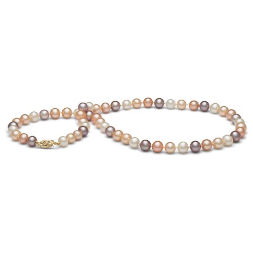 Read more AAA Quality, 7.5-8.0 mm Multicolor Freshwater Pearl Necklace, 16-inch, 14k White Gold Clasp