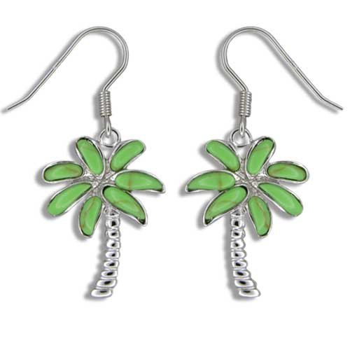 Sterling Silver Hawaiian Green Turquoise Plam Tree Earrings by