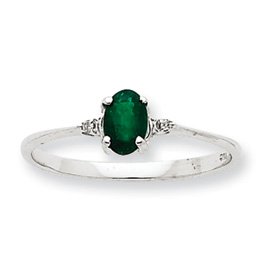 14k White Gold Diamond and Emerald Birthstone Ring - Size 6 - JewelryWeb by