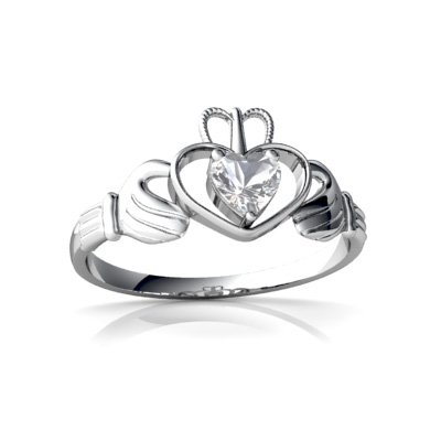 14K White Gold Heart Genuine White Topaz Celtic Claddagh Ring Size 5.5 by Jewels For Me