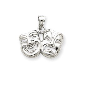 14k White Gold Polished Open-Backed Comedy Tragedy Pendant - Measures 17.6x18.3mm - JewelryWeb Feature