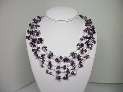 Read more HinsonGayle "Gabriella" Handwoven Five-Strand Pearl and Amethyst Necklace (Artisan Collection)