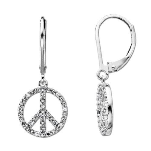 Sterling Silver Diamond Peace Sign Drop Earrings (.248 cttw, I-J Color, I2-I3 Clarity) Feature