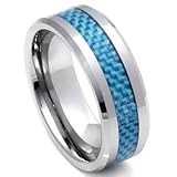 Tungsten Carbide Light Blue Aquamarine Carbon Fiber Wedding Band Ring Sz 14.0 Feature
