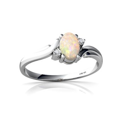 14K White Gold Oval Genuine Opal Ring Size 7 by Jewels For Me