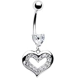 Read more 14k White Gold Paved Cubic Zirconia Heart Belly Ring
