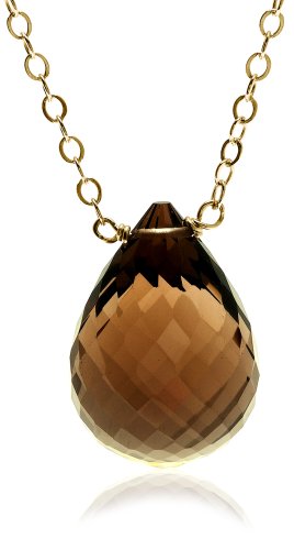 14k Yellow Gold Smoky-Quartz Briolette Drop Necklace by Amazon.com Collection