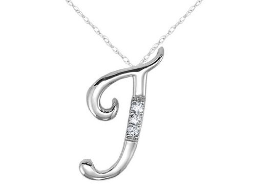 Diamond Initial J Pendant in 10K White Gold with Chain by MyJewelryBox