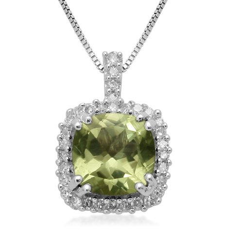 10k White Gold, August Birthstone, Peridot and Diamond Cushion Pendant by Amazon.com Collection