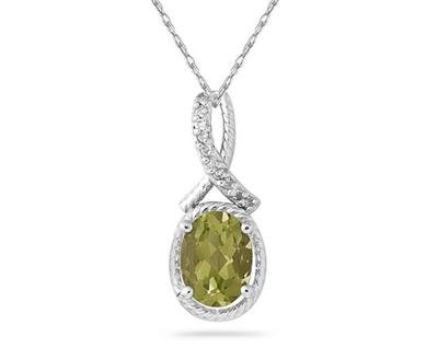 Oval Shape Peridot and Diamond Pendant in 10K White Gold Feature