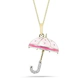 Read more 10k Yellow Gold Pink Enamel with Diamonds Umbrella Pendant (0.02 cttw, I-J Color, I2-I3 Clarity), 18"