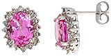 Read more 10k White Gold Oval Cluster Earrings, w/ 3.50 Total Carat Oval Cut Pink Topaz Stones & Brilliant Cut Diamonds