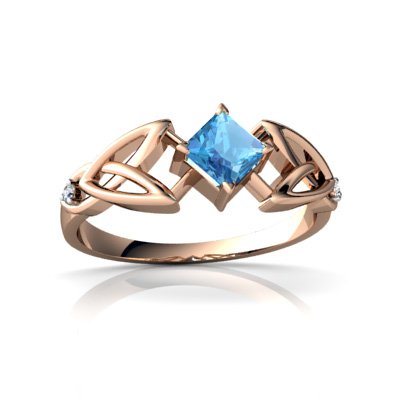14k Rose Gold Square Genuine Blue Topaz Celtic Knot Ring Size 7.5 by Jewels For Me