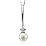 Natural Diamond and Pearl Necklace Pendant in 10k White Gold -18" by My Love Wedding Ring