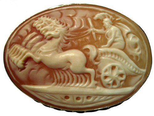Roman Chariot Cameo Carnelian Conch Shell Master Carved Italian Feature