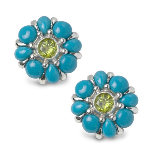 Read more Summer Blossom Sterling Silver Sleeping Beauty Turquoise & Peridot Button Earrings (Clip)