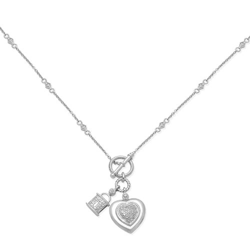 Sterling Silver Lock Heart Toggle Charm Diamond Pendant (1/5 cttw, I-J Color, I2-I3 Clarity), 18" Feature