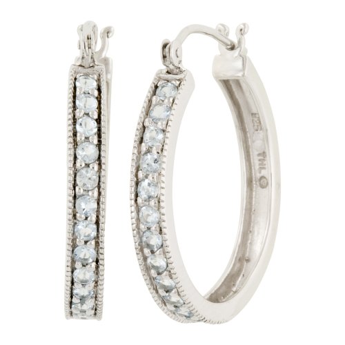 10k White Gold Aquamarine Hoop Earrings by Amazon Curated Collection