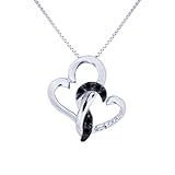 Read more 10k White Gold Black and White Diamond Double Heart Pendant (0.14 cttw, I-J Color, I2-I3 Clarity), 18"